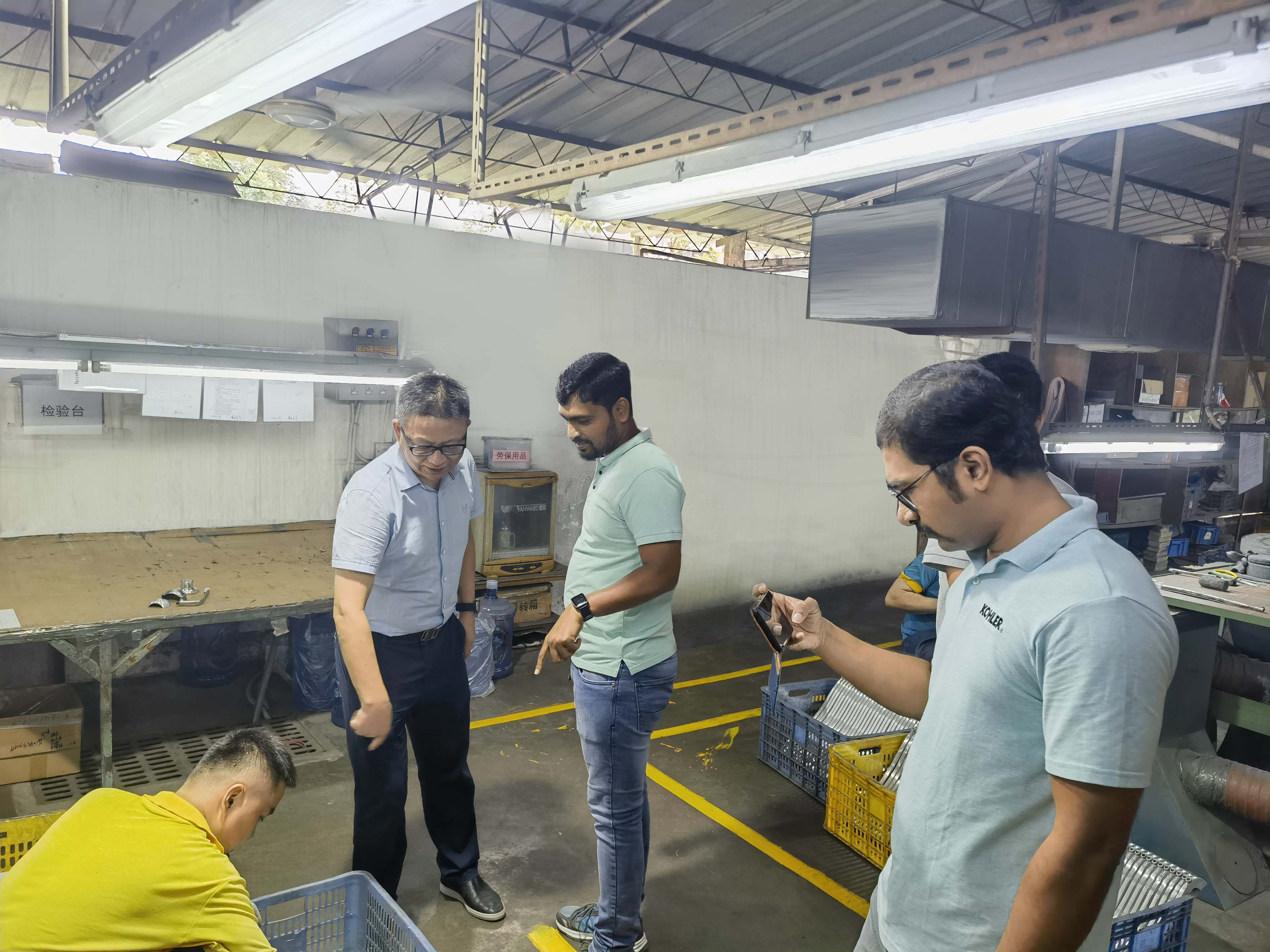 Mr.Sandeep 一行對本次開發的燈飾產品的製造過程進行了實地考察,考察中,Mr.Sandeep 對我司的製造工藝、品質管控和精細管理給予了高度肯定。